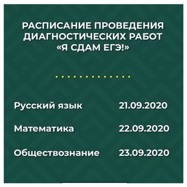 19.09.2020С 21 по 23 сентября во всех общеобразовательных организациях Чеченской Республики, реализующих программу среднего общего образования, пройдут диагностические работы по трем предметам - русский язык, математика и обществознание.