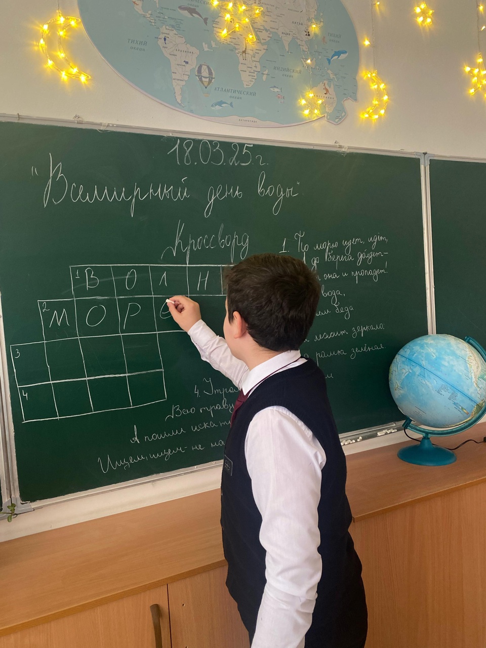 20.03.2025Отметим Всемирный день воды: Урок, посвященный ценности водыСегодня в нашей школе прошло увлекательное занятие, посвященное Всемирному дню воды. Это событие напоминает нам о важности водных ресурсов и необходимости бережного отношения к ним. В ходе урока ученики узнали о роли воды в экосистеме, обсудили проблемы загрязнения и дефицита воды, а также узнали, как каждый из нас может помочь сохранить этот жизненно важный ресурс.Мы провели интересные эксперименты, провели обсуждения и даже создали плакаты с идеями по охране воды. Каждый из нас может внести свой вклад в защиту окружающей среды!Присоединяйтесь к нам в нашем стремлении сделать мир лучше и позаботиться о воде – источник жизни!