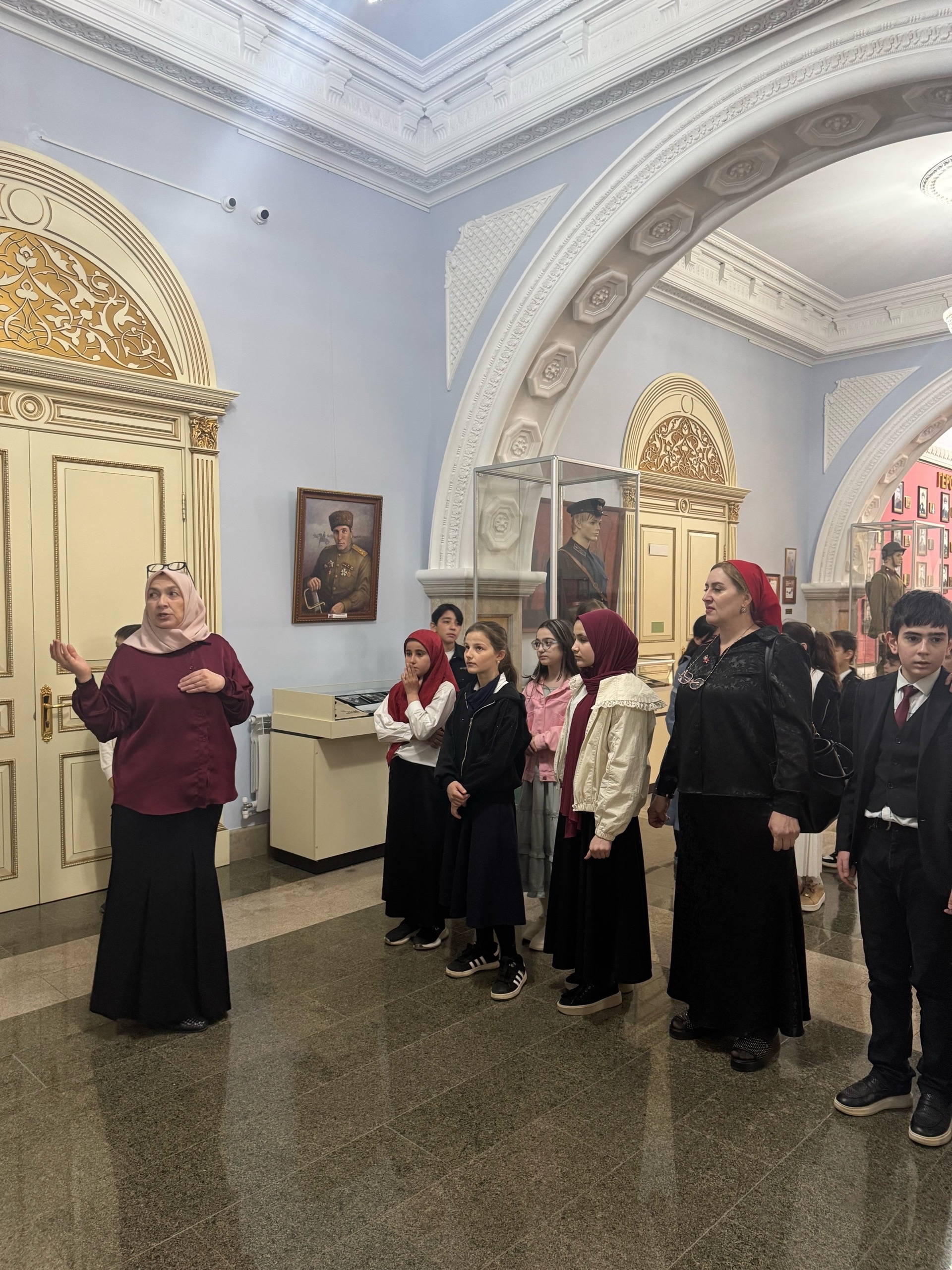Сегодня в Мемориальном комплексе Славы имени А.А.Кадырова прошла увлекательная выставка творчества Муситовой Заремы , где приветствовали юных гостей. Благодаря председателю Родительского комитета Пашаевой Розы Магомедовны наши дети смогли побывать на выставке ходижницы Муситовой Заремы, а так же Зам. Директора по ВР Магамадова Ф.Н провела музейный урок. Дети получили уникальную возможность не только узнать о значимых событиях нашей истории, но и насладиться выставкой картин талантливой художницы. Яркие полотна вдохновили ребят на творчество и обсуждение, а увлекательные экскурсии помогли погрузиться в атмосферу славы и искусства. Искренне надеемся, что этот визит станет для них началом интересного пути в мир культуры и истории!
