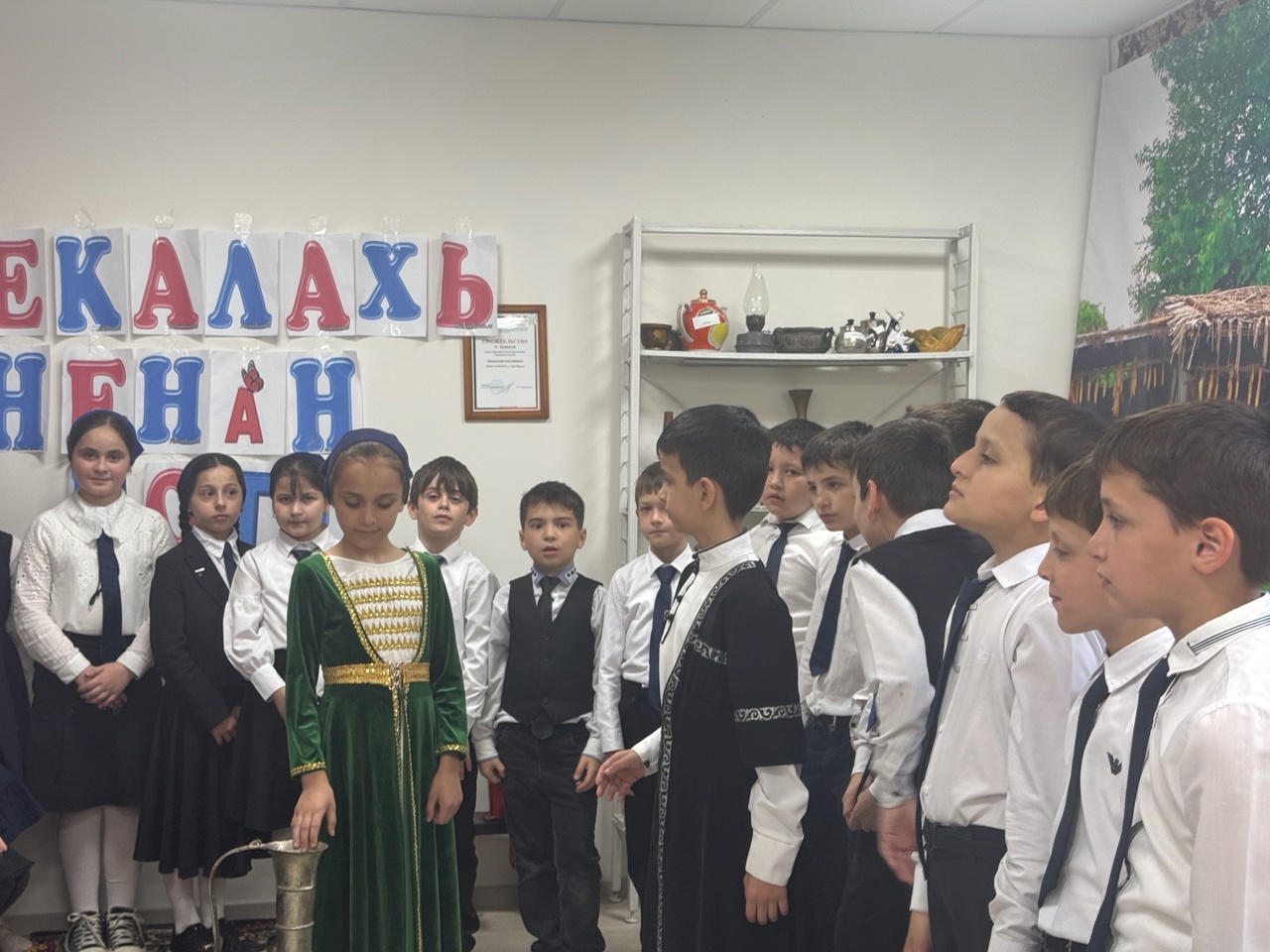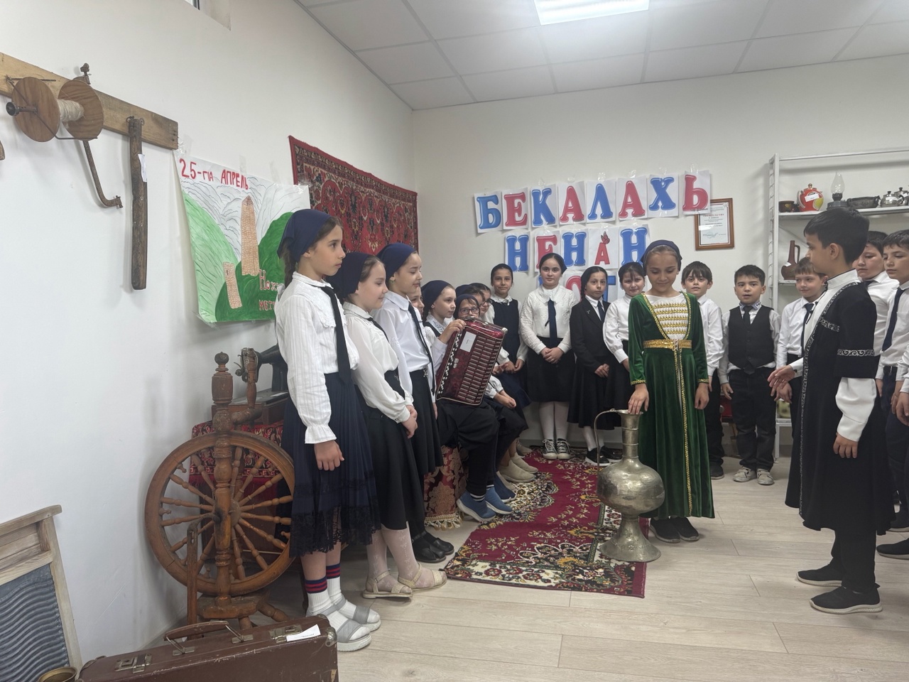 24.04.2025Сегодня в нашем школьном краеведческом Сатуева Л.С учитель начальных классов провела увлекательный классный час в нашем музее для третьеклассников, посвященный родному чеченскому языку. Ребята узнали о значении родного языка, о нашей культуре и истории, а также о его важности в повседневной жизни. В ходе занятия дети приняли активное участие, где демонстрировали свои знания и навыки. Мы говорили о народных чеченских сказках, пословицах, поговорках, обычаях и традициях , которые передаются из поколения в поколение, а также о том, как родной язык помогает нам понимать и ценить свою культуру. Мы уверены, что такие мероприятия помогают развивать интерес к родному языку и стимулируют детей учиться и узнавать больше о своих корнях. Спасибо всем участникам за активное участие и интересные идеи!