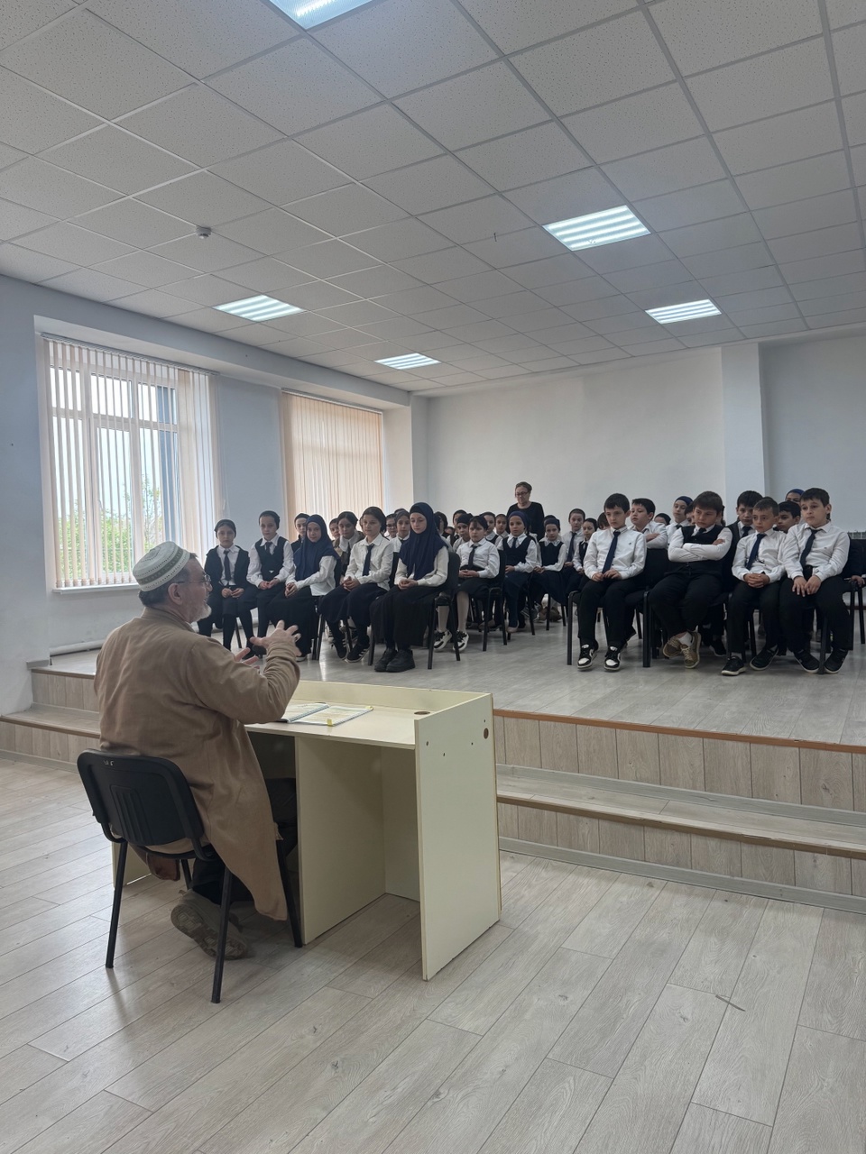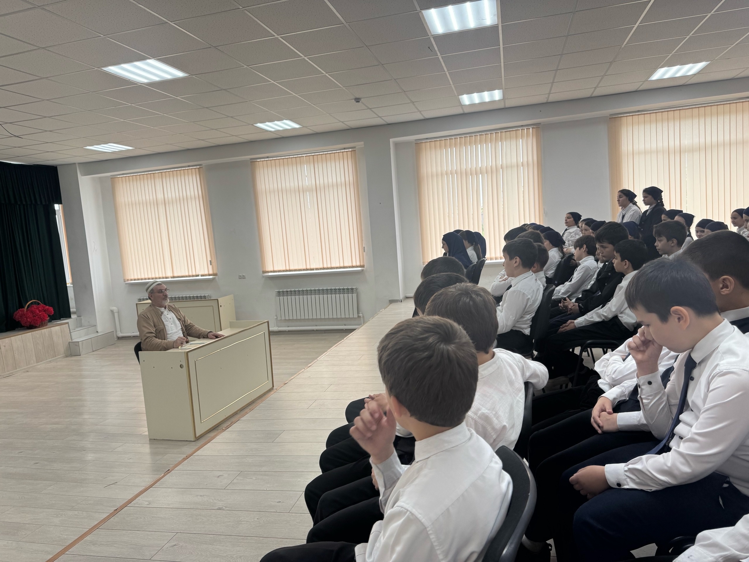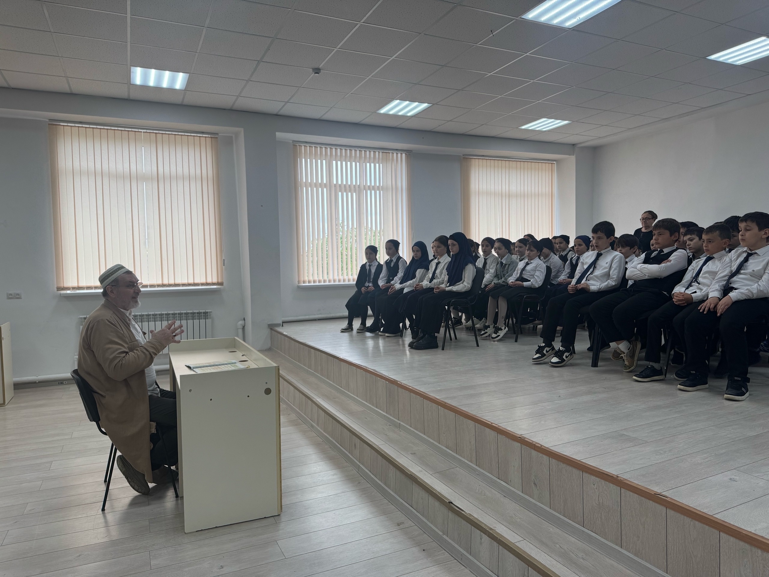 06.05.2025Сегодня в актовом зале наш духовник Ахмадов И. Х-А проводит увлекательную и познавательную беседу с учащимися 3-4 классов. Цель встречи — познакомить юных ребят с основами религии ислама, рассказать о духовных ценностях, традициях и культурных особенностях этой великой религии. Такие мероприятия помогают детям лучше понять мир вокруг, развивают уважение к различиям и учат добросовестному отношению к себе и окружающим.Маленькие слушатели с интересом и вниманием слушают рассказы о доброте, милосердии и важности честности в исламе. Духовник отвечает на вопросы детей, объясняет значение молитвы, поста и других исламских обрядов, делая их понятными и доступными для юного восприятия. Такие встречи способствуют формированию у ребят положительных ценностей, расширяют их кругозор и помогают лучше понять духовный мир своей религии. Мы уверены, что подобные мероприятия вдохновляют молодое поколение на добро, уважение и понимание друг друга.