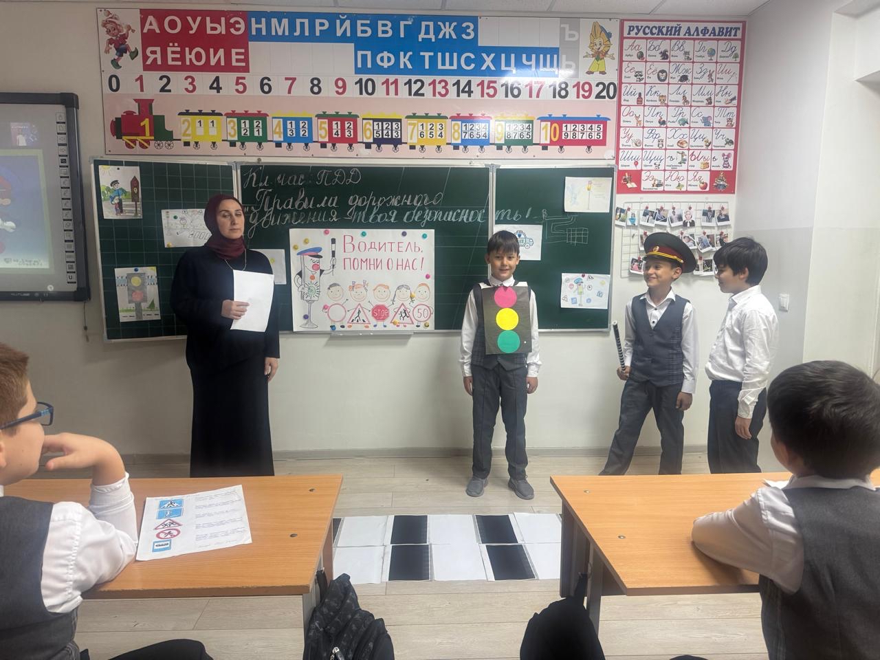 19.09.2025Безопасность на дорогах – наша забота! Фотоотчет с классного часа в 3 классе.В МБОУ СОШ 5 г. Урус-Мартан в 3 классе прошел увлекательный и познавательный классный час, посвященный очень важной теме – профилактике дорожной безопасности. В каждую неделю мы стараемся закрепить знания о дорожных знаках, сигналах светофора и правилах перехода проезжей части.Учим распознавать опасные ситуации на дороге и правильно на них реагировать.Развить навыки безопасного поведения в качестве пешехода и пассажира.Воспитывать ответственность за свою жизнь и жизнь окружающих.На классном часе ребята активно участвовали в играх, разгадывали загадки, решали задачи и обсуждали различные дорожные ситуации. Мы вместе вспоминали, как правильно переходить дорогу по пешеходному переходу, как вести себя в общественном транспорте и что делать, если возникла опасная ситуация.